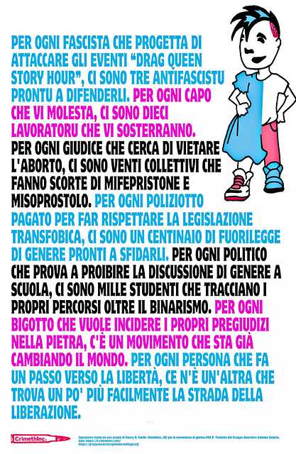 Per ogni fascista che progetta di attaccare gli eventi “drag queen story hour”, ci sono tre antifascistu prontu a difenderli.