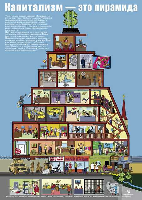 Нас учат конкурировать друг с другом для улучшения собственного положения. Но на верхушке пирамиды нет места для всех. Неважно, насколько усердно мы трудимся — пирамида не сможет расширяться вечно. Рано или поздно система рухнет: глобальное потепление и рецессия — первые признаки этого. Вместо того, чтобы падать вместе с фараонами, давайте объединим усилия для создания другого образа жизни.